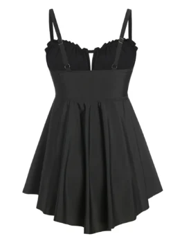 • Plus Size Polka Dot Ruffle Mock Button Tankini Swimwear
