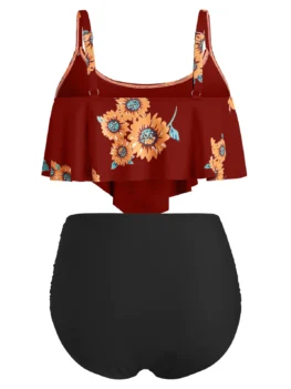 Plus Size Ruffled Sunflower Print Bikini Set