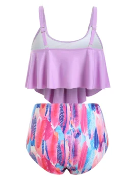 Gender: For Women Swimwear Type: Tankini Material: Polyester,Polyurethane Bra Style: Padded Support Type: Wire Free Neckline: Scoop Neck Pattern Type: Paint Splatter Embellishment: Ruffles Waist: High Waisted Weight: 0.3800kg Package Contents: 1 x Top 1 x Briefs