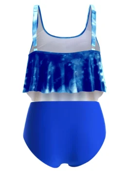 Plus Size Ruffled Tie Dye Ruched Tankini Swimsuit