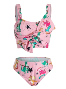 • Plus Size Star Dinosaur Knotted Tankini Swimwear with Skirt