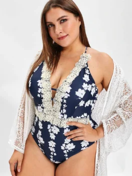 • Printed Halter Neck Plus Size Swimsuit
