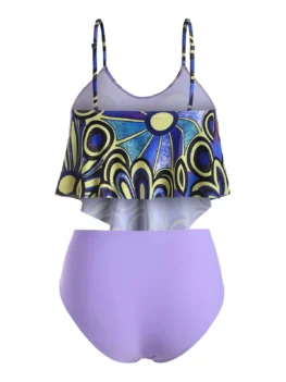 Gender: For Women Swimwear Type: Tankini Material: Polyester,Spandex Bra Style: Padded Support Type: Wire Free Neckline: Spaghetti Straps Pattern Type: Print Embellishment: Flounce,Ruched Waist: High Waisted Elasticity: Elastic Weight: 0.3100kg Package Contents: 1 x Top 1 x Briefs
