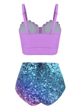 The charming bottom will help to catch eyes, while the high waisted design creates a figure-flattering silhouette. The knotted detail enhances your natural curves, and the scallops add a chic vibe.   Style: Fashion Swimwear Type: Bikini Gender: For Women Material: Polyester,Spandex Bra Style: Padded Support Type: Wire Free Neckline: Sweetheart Neck Pattern Type: Print Embellishment: Scalloped Waist: High Waisted Weight: 0.2200kg