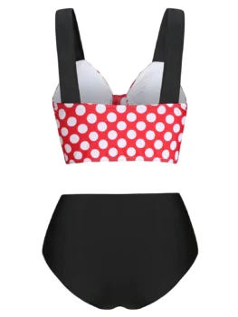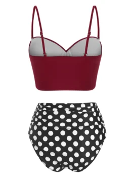 • Polka Dot Tied Underwire Tummy Control Bikini Swimwear