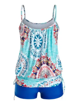 • Plus Size Tribal Print Cinched Tankini Swimwear