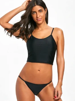 Just feel free and laid-back with this simple solid swimsuit, which features a cami crop top with adjustable shoulder straps and padded cups, and a super sexy string briefs. There are three colors for your choices. The black one is mysterious while the red one shows passion for life. The yellow one brings youth and…