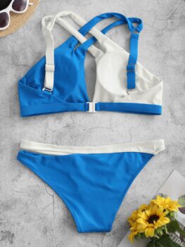 • Colorblock Crisscross Keyhole Low Waisted Bikini Swimwear