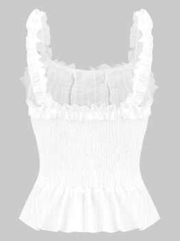 Floral lace, sweet ruffled brim and a front lace-up detail make this tank top in a peplum style a vintage-chic delight. Material: Cotton,Polyester Shirt Length: Regular Pattern Type: Solid Style: Fashion Weight: 0.1300kg Package Contents: 1 x Tank Top