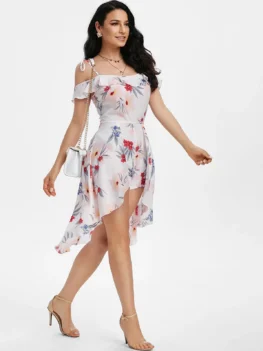 Style: Casual Occasion: Day Material: Polyamide,Polyester,Spandex Silhouette: High Low Dresses Length: Mini Neckline: V-Neck Sleeve Length: Short Sleeves Pattern Type: Floral With Belt: No Season: Summer Weight: 0.2500kg Package Contents: 1 x Dress 1 x Top