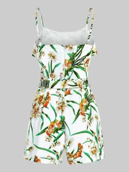 Style: Fashion Material: Polyester Neckline: Spaghetti Strap Sleeve Length: Short Sleeves Pattern Type: Floral Embellishment: Flounce Fit Type: Regular Placement Print: No Season: Summer With Belt: No Weight: 0.2700kg Package Contents: 1 x Romper
