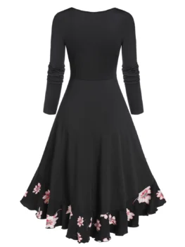 Style: Fashion Occasion: Casual ,Day Material: Polyester,Polyurethane,Rayon Silhouette: Asymmetrical Dresses Length: Mid-Calf Neckline: Spaghetti Strap Sleeve Length: Long Sleeves Pattern Type: Floral Fabric Stretch: Slight Stretch With Belt: No Season: Fall,Spring Weight: 0.4300kg Package Contents: 1 x Dress 1 x Cami Dress