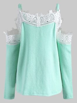 Show your elegance in the party by wearing this two-tone dress! Its foldover design echoes well with the cami straps to create alluring open shoulders. And the lace overlay gives a feminine vibe. Style: Fashion Occasion: Cocktail & Party,Day,Prom Material: Polyester Silhouette: A-Line Dresses Length: Mid-Calf Neckline: Spaghetti Strap Sleeve Type: Cold Shoulder Sleeve Length: Short Sleeves Embellishment: Lace Pattern Type: Others With Belt: No