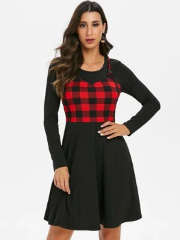 Material: Cotton,Polyester Length: Mid-Calf Silhouette: A-Line Pattern Type: Plaid Season: Fall,Spring With Belt: Yes Weight: 0.3270kg Package Contents: 1 x Dress 1 x Belt