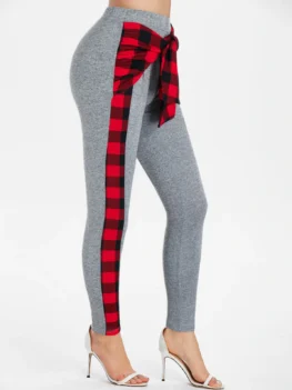 Style: Fashion Length: Normal Material: Polyester,Polyurethane Fit Type: Skinny Waist Type: High Closure Type: Elastic Waist Front Style: Flat Pattern Type: Plaid Embellishment: Pockets,Zippers Pant Style: Pencil Pants With Belt: No Season: Fall,Spring,Winter Weight: 0.2500kg Package Contents: 1 x Pants