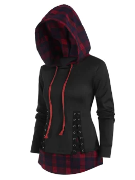 Material: Polyester Shirt Length: Long Sleeve Length: Full Style: Casual Pattern Style: Plaid Embellishment: Lace up Season: Fall,Spring Elasticity: Elastic Weight: 0.3600kg Package Contents: 1 x Hoodie