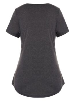 Product Description: A classic short-sleeved tee that features partial button closures front and a curved hemline for on-trend style. Style: Casual Material: Polyester,Rayon Collar: V-Neck Shirt Length: Long Sleeve Length: Short Pattern Type: Solid Season: Summer Weight: 0.2200kg Package Contents: 1 x T Shirt