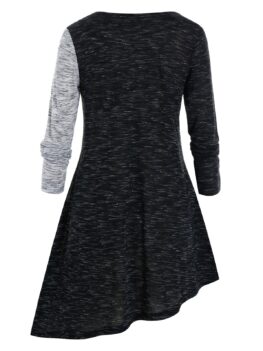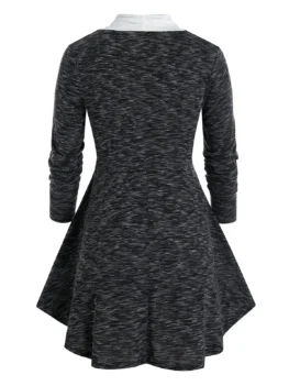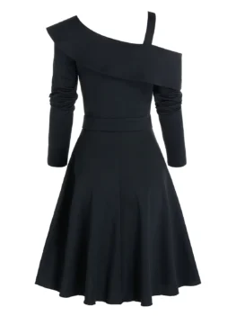 Style: Casual Occasion: Day Material: Polyester,Spandex Silhouette: A-Line Dress Type: Layered Dress Dresses Length: Mini Neckline: Skew Collar Sleeve Length: Long Sleeves Waist: High Waisted Embellishment: Zippers Pattern Type: Solid With Belt: No Season: Fall,Spring Weight: 0.4300kg