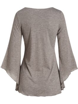 Style: Casual Material: Polyester,Rayon Collar: V-Neck Shirt Length: Regular Sleeve Length: Full Sleeve Type: Flare Sleeve Pattern Type: Solid Color Season: Fall,Spring,Summer Weight: 0.2000kg Package Contents: 1 x Tee