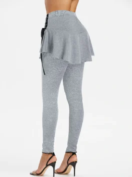 Style: Casual Length: Ninth Material: Polyester,Spandex Fit Type: Skinny Waist Type: Mid Closure Type: Elastic Waist Pattern Type: Solid Embellishment: Lace up Pant Style: Pencil Pants Season: Fall,Spring Weight: 0.2500kg Package Contents: 1 x Pants