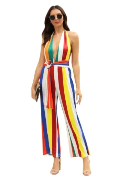 Style: Fashion Material: Polyester,Polyurethane Pattern Type: Striped Fit Type: Regular Placement Print: No Season: Summer With Belt: Yes Weight: 0.2850kg Package Contents: 1 x Jumpsuit 1 x Belt