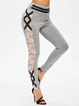 Style: Fashion Occasion: Daily Material: Polyester,Polyurethane Elasticity: Elastic Waist Type: High Pattern Type: Others Embellishment: Lace up,Rivet Length: Full Season: Fall,Spring Weight: 0.2680kg Package Contents: 1 x Leggings