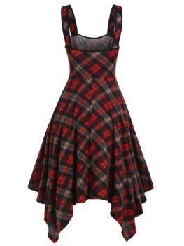 Style: Casual Occasion: Casual ,Day Material: Polyester,Polyurethane Silhouette: A-Line Dresses Length: Mid-Calf Neckline: Sweetheart Neck Sleeve Length: Sleeveless Embellishment: Lace up Pattern Type: Plaid With Belt: No Season: Fall,Spring Weight: 0.4320kg Package Contents: 1 x Dress