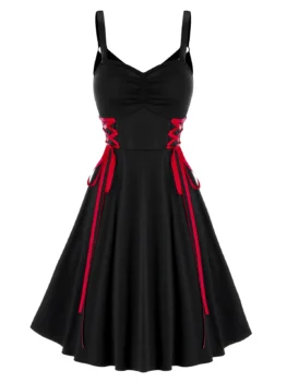 Style: Gothic Occasion: Casual ,Day Material: Polyester,Polyurethane Silhouette: A-Line Dresses Length: Mini Neckline: Sweetheart Neck Sleeve Length: Sleeveless Embellishment: Lace,Lace up Pattern Type: Others With Belt: No Season: Fall,Summer Weight: 0.1860kg Package Contents: 1 x Dress