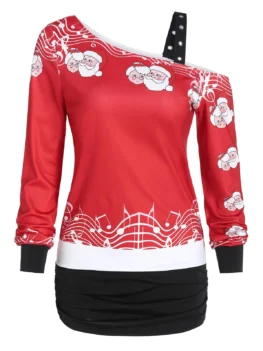 erial: Polyester,Polyurethane Shirt Length: Regular Sleeve Length: Full Sleeve Type: Cold Shoulder Style: Fashion Pattern Style: Santa Claus Embellishment: Ruched Season: Fall,Winter Weight: 0.2780kg Package Contents: 1 x Sweatshirt