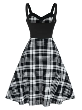Style: Casual Occasion: Casual Material: Polyester,Polyurethane Silhouette: A-Line Dresses Length: Knee-Length Neckline: Sweetheart Neck Sleeve Length: Sleeveless Waist: High Waisted Pattern Type: Plaid Elasticity: Elastic With Belt: No Season: Summer Weight: 0.3170kg Package Contents: 1 x Dress