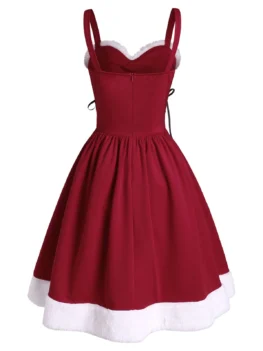 Style: Fashion Occasion: Christmas,Cocktail & Party,Prom Material: Polyester Silhouette: A-Line Dresses Length: Knee-Length Neckline: Sweetheart Neck Sleeve Length: Sleeveless Waist: Empire Embellishment: Lace up Pattern Type: Colorblock Fabric Stretch: Slight Stretch With Belt: No Season: Fall,Winter Weight: 0.4200kg