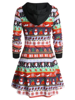 • Christmas Printed Long Sleeve Tunic Hoodie
