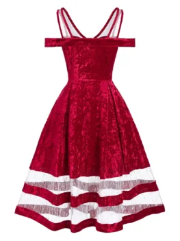 Christmas Lace Insert Cold Shoulder Velvet Dress