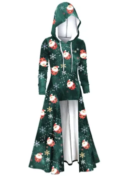 • Christmas Santa Claus Snowflake Longline Hoodie