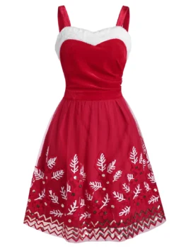 • Christmas Leaves Mesh Velvet Sequins Dress