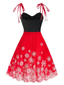 Style: Fashion Occasion: Christmas Material: Polyester,Polyurethane Silhouette: A-Line Dresses Length: Knee-Length Neckline: Spaghetti Strap Sleeve Length: Sleeveless Pattern Type: Snowflake Fabric Stretch: No Stretch With Belt: No Season: Fall,Spring Weight: 0.2900kg Package Contents: 1 x Dress