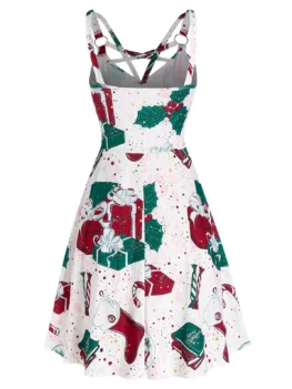 • Christmas Gifts Socks Print Sleeveless Strappy Dress
