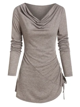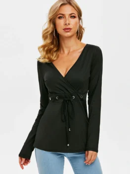 The long-sleeve tee adorns with an alluring plunging neckline to show off your bust area in the best possible way. The drawstring waist can be adjusted so as to flaunt your slim waist. Style: Fashion Material: Polyester,Polyurethane Collar: Plunging Neck Shirt Length: Long Sleeve Length: Full Pattern Type: Solid Season: Fall,Spring Weight: 0.2200kg Package Contents: 1 x T-shirt