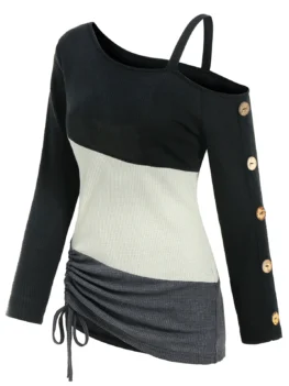 Style: Fashion Material: Cotton,Polyester Collar: Off The Shoulder Shirt Length: Regular Sleeve Length: Full Pattern Type: Solid Color Embellishment: Lace up Season: Fall,Spring Weight: 0.2430kg Package Contents: 1 x T-shirt