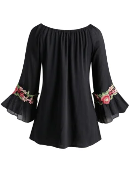 Style: Fashion Material: Polyester Shirt Length: Regular Sleeve Length: Full Sleeve Type: Raglan Sleeve Collar: Scoop Neck Pattern Type: Floral Embellishment: Appliques Season: Fall,Spring Weight: 0.2400kg Package Contents: 1 x Blouse