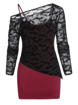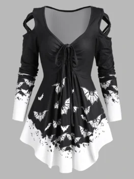Style: Fashion Material: Polyester,Polyurethane Collar: Skew Collar Shirt Length: Long Sleeve Length: Full Pattern Type: Animal,Bat,Moon Season: Fall,Spring Weight: 0.2670kg Package Contents: 1 x Top 1 x Cami Top