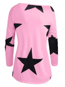 Style: Fashion Material: Cotton,Polyester Collar: Skew Collar Shirt Length: Regular Sleeve Length: Full Pattern Type: Star Season: Fall,Spring Elasticity: Elastic Weight: 0.2000kg Package Contents: 1 x Top