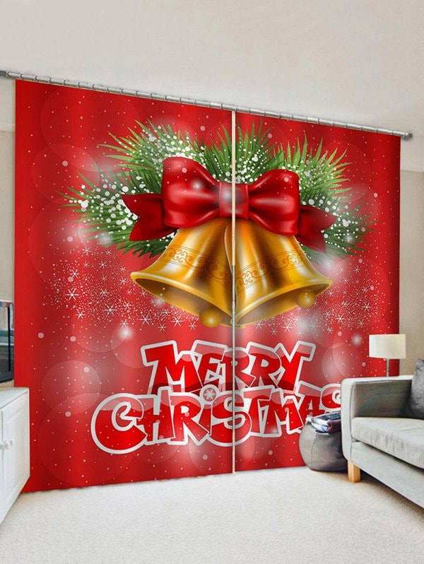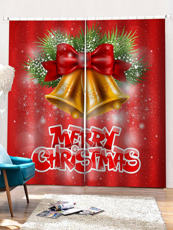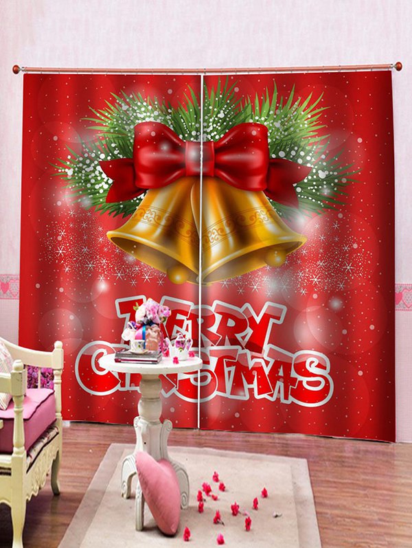 2 Panels Christmas Bells Bowknot Letters Print Window Curtains