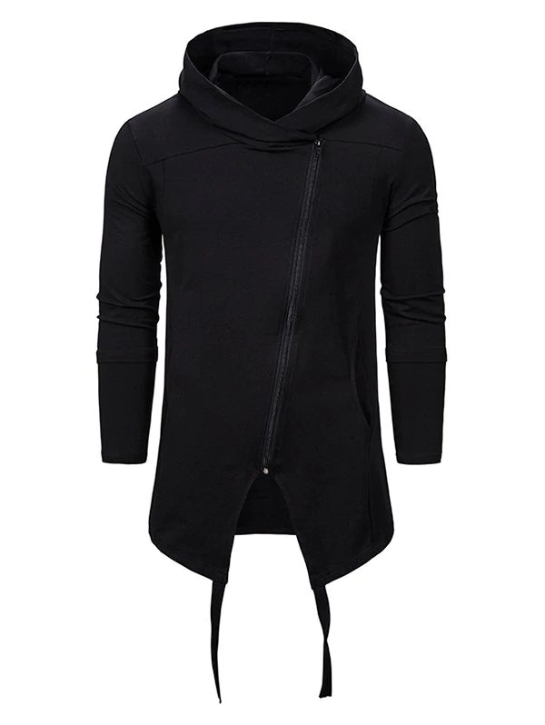 Asymmetrical Zip Up Gothic Longline Hoodie