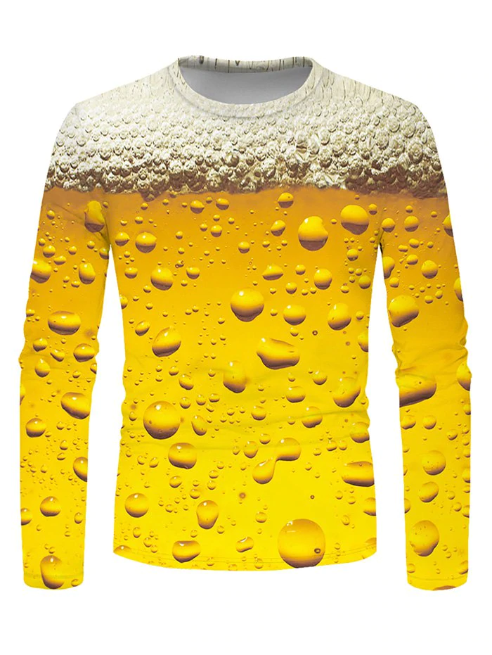 Beer Foam Print Crew Neck Long Sleeve T Shirt