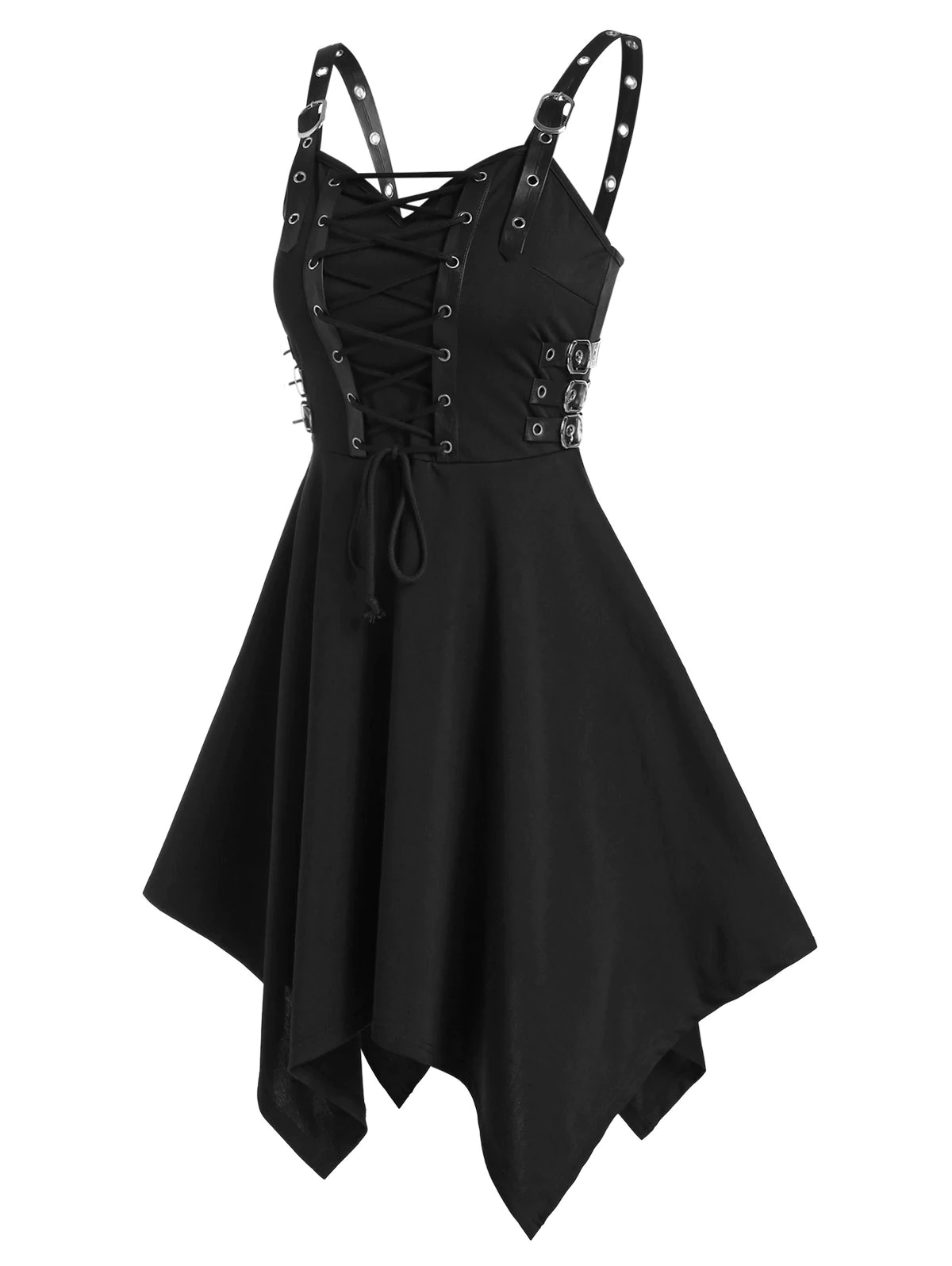 Buckle Strap Lace-up Handkerchief Gothic Dress