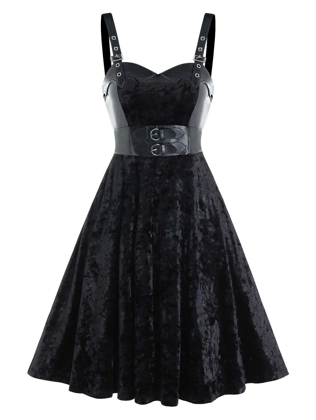 Buckle Strap Velvet Fabric Lace-up Sleeveless Dress