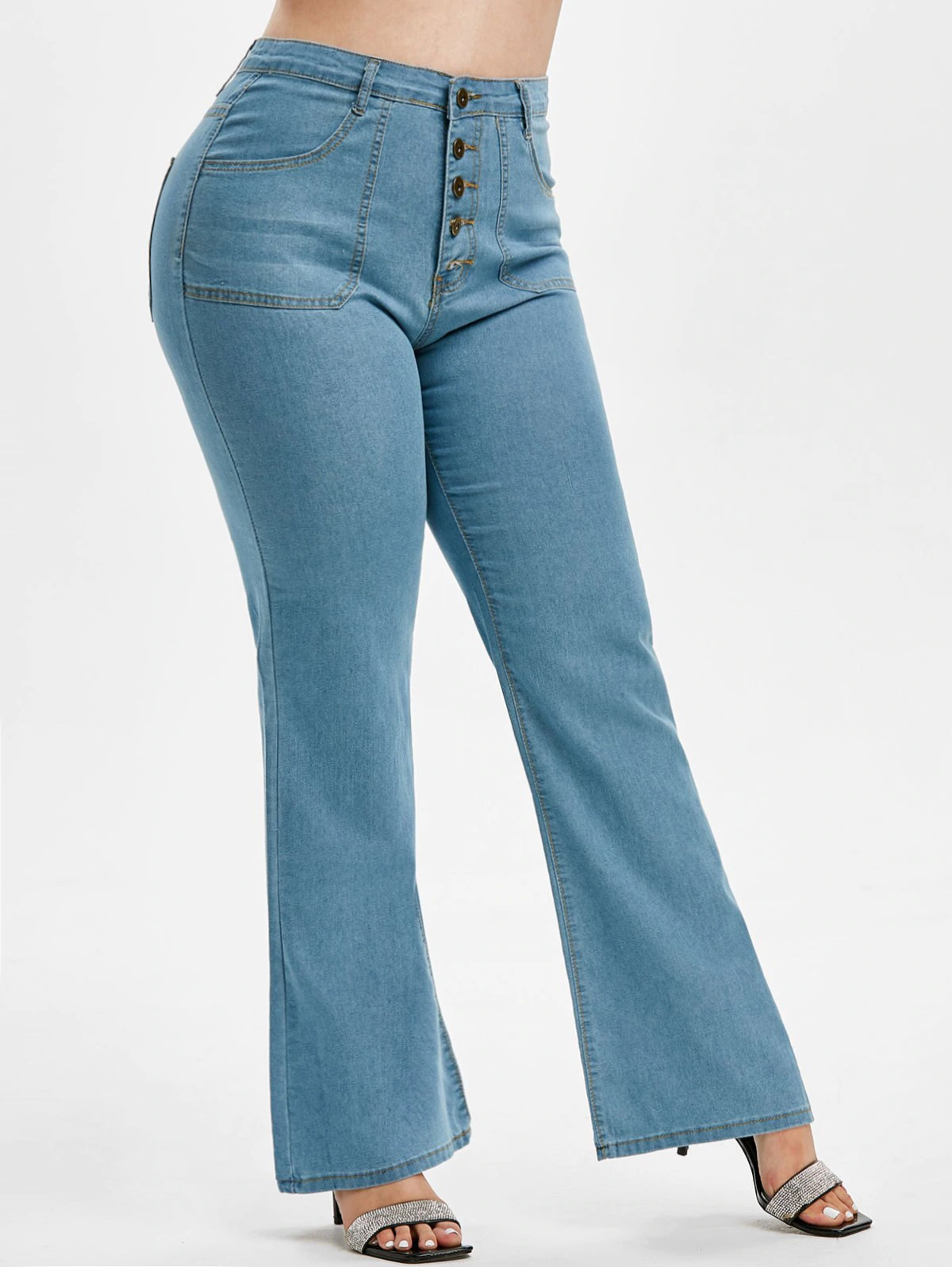 Button Fly High Waisted Plus Size Flare Jeans