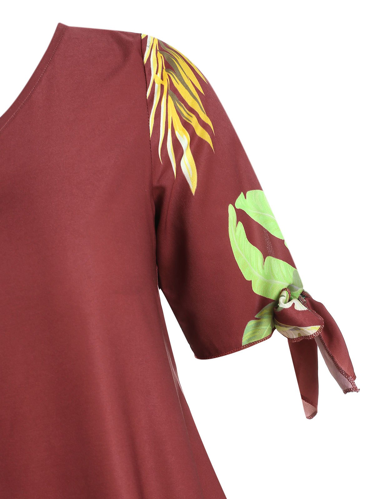 Buttoned Leopard Leaves Butterfly Tie Split Sleeve Plus Size Dre