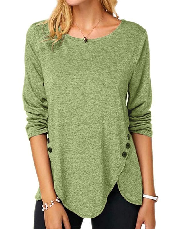 Buttoned Slit Long Sleeve Tunic Tee